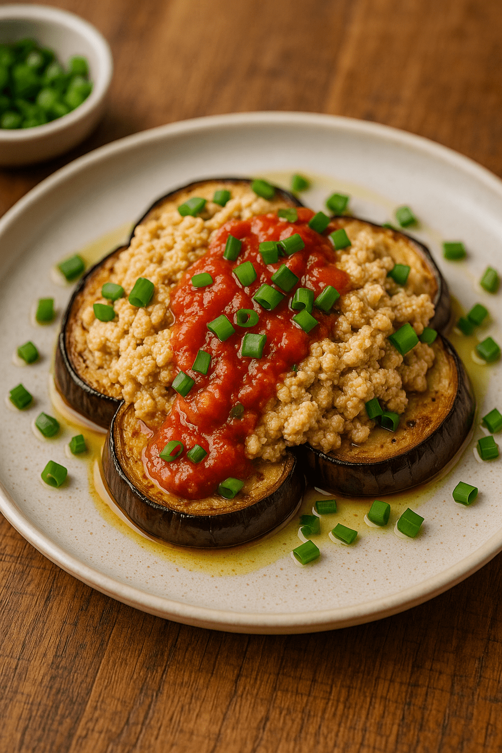 Receita de berinjela assada com pasta de tofu: opção vegana, fitness e saudável, rica em proteínas vegetais e perfeita para emagrecer com saúde.